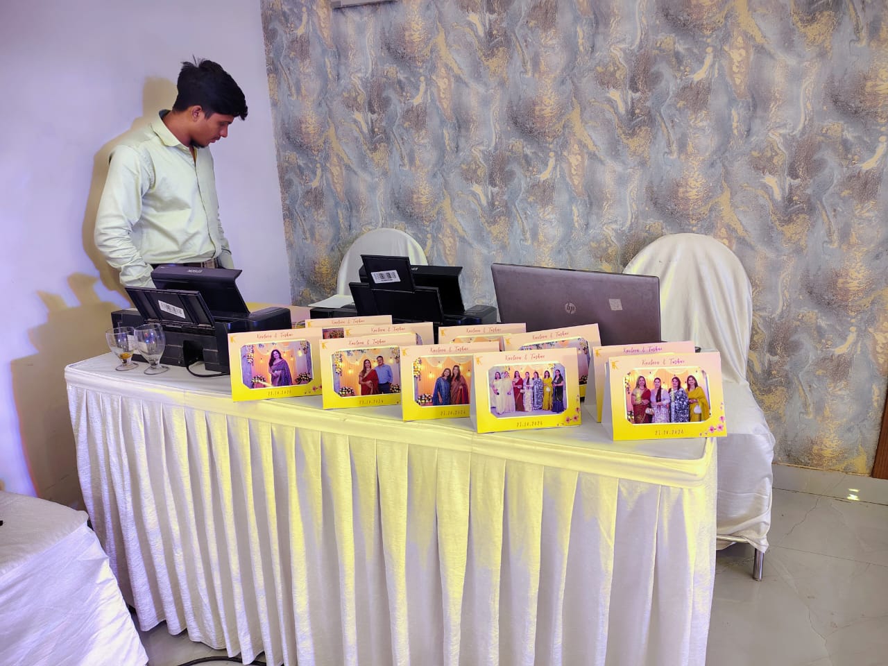 - Guest Interaction – Our team hands over prints neatly and professionally.